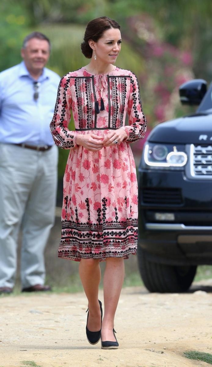 在出訪印度時,凱特王妃選擇了這件Topshop的圖騰洋裝。