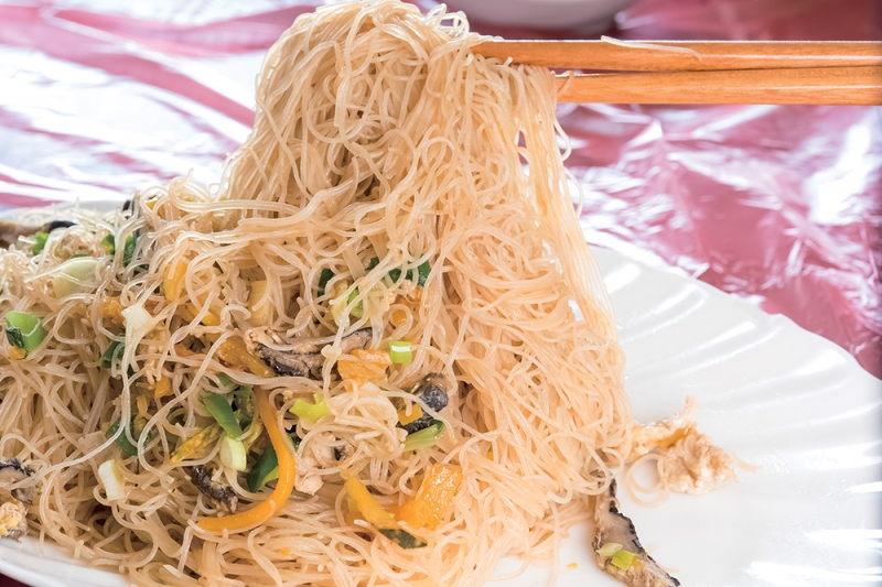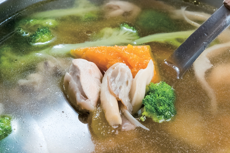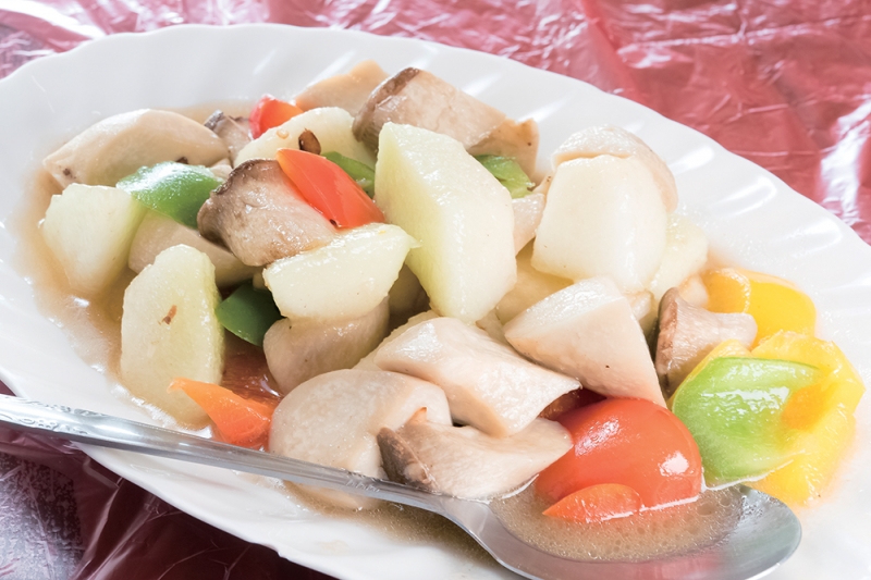 南瓜米粉、哈密瓜雞湯、哈密瓜炒杏鮑菇及酥炸南瓜,是金霞大姊的拿手菜。