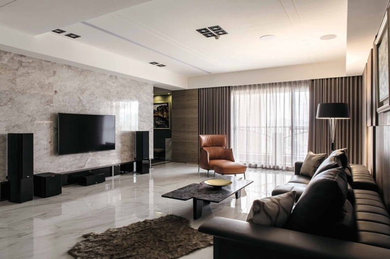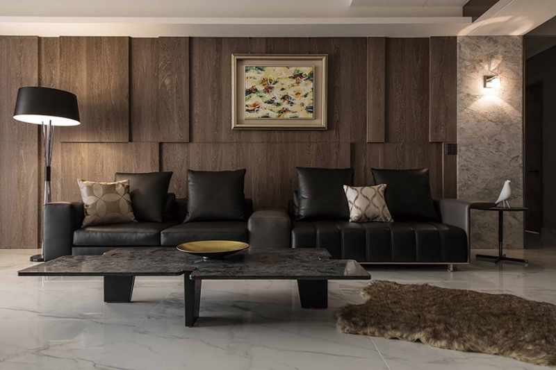 使用建材︱天然石材、石紋磁磚、石紋美耐板、實木貼皮、車縫皮革、超耐磨木地板