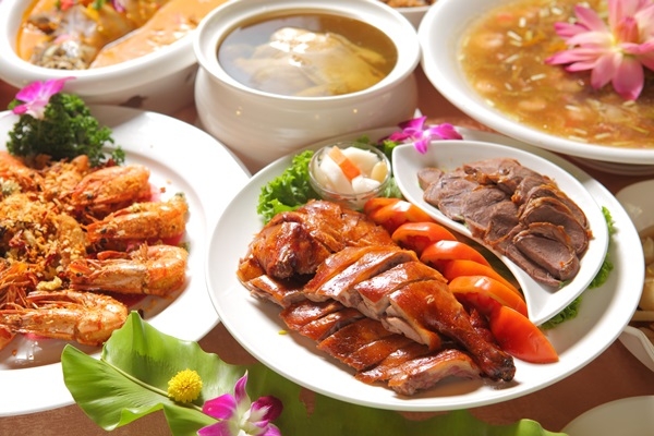 當季時令旬菜選擇多樣化,活海鮮蝦兵蟹將陣容強大,大閘蟹、日本北海道鱈場蟹、斯里蘭卡沙公沙母、花蟹、波士頓龍蝦、紅蟳,以及澎湖空運來的龍蝦魚獲,肥美的秋蟹自然最不可錯過;冬天也是吃火鍋的季節,老饕推薦的人蔘布袋鵝要選用豬肚塞入鵝肉與人蔘中藥材,須經長時間燉煮,湯頭底韻溫補且清爽不油膩;招牌牛鍋以牛大骨、洋蔥及多種蔬菜精燉而成,牛腩、牛肚、牛筋吃到滿滿的膠質。來台中遊花博,品嚐美食正是時候!