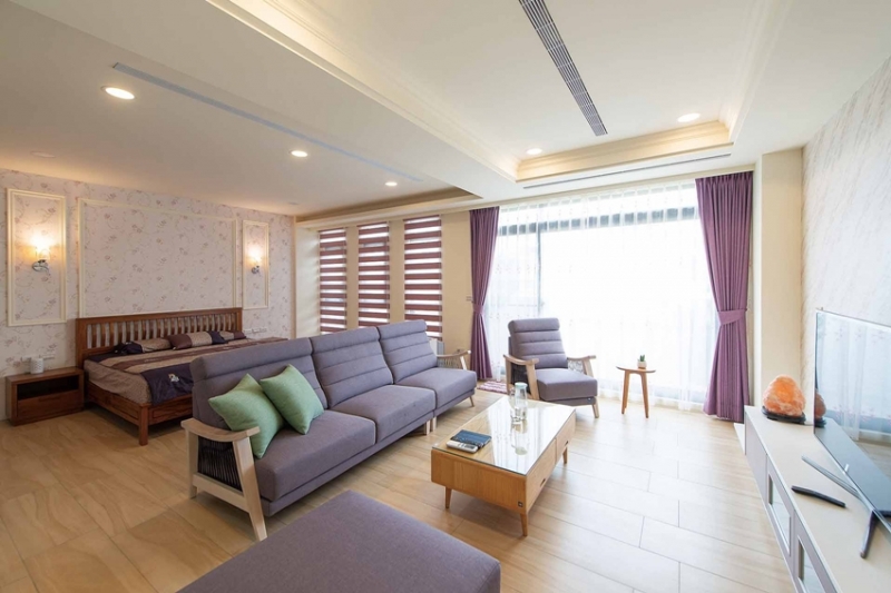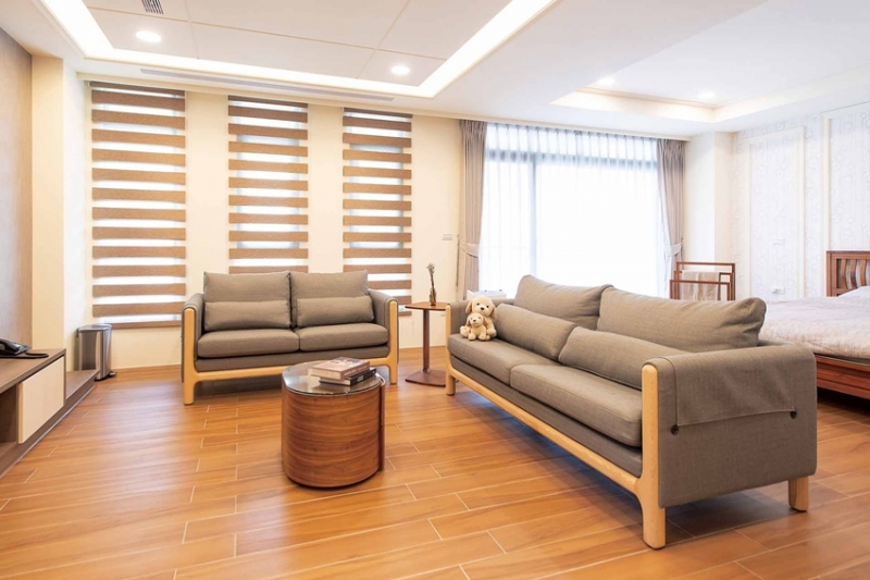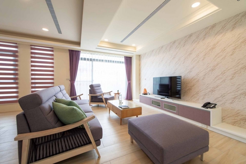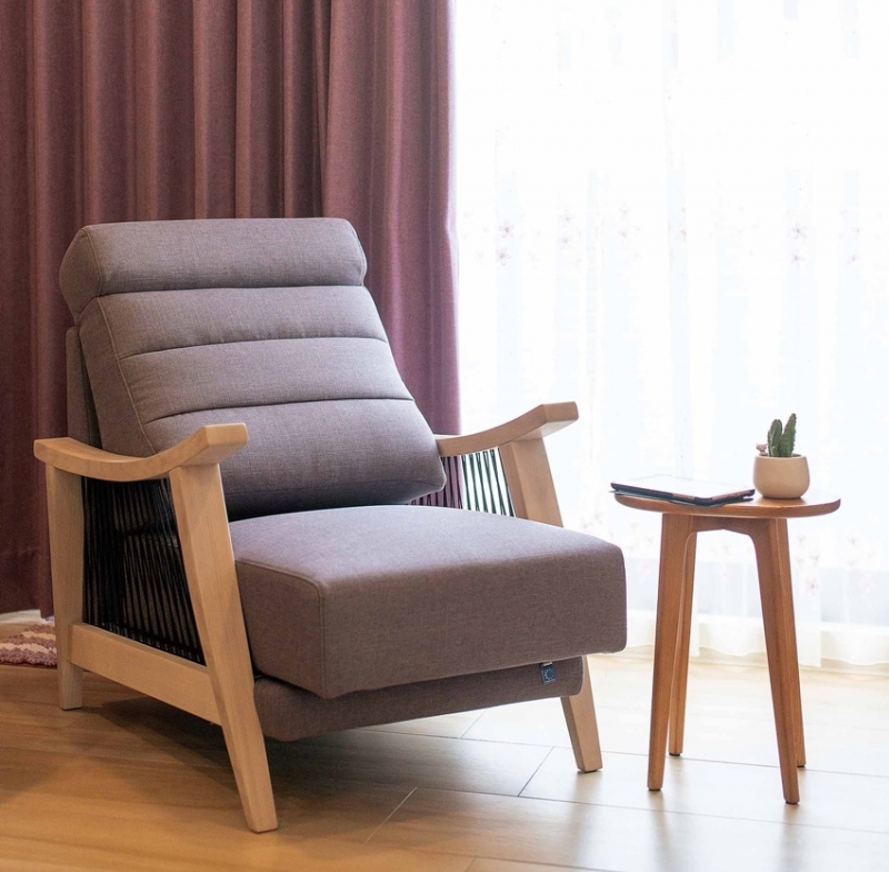 喜歡紫色的辜媽媽,對品味有一定的個性堅持,一開始非常擔心會找不到能合襯臥室的紫色系沙發,從事家具業已多年的店長王品卉,聆聽完辜媽媽的需求後,建議她可以選用蘇珊娜系列沙發,因為優渥實木沙發布料顏色多元,布料方面能以柔雅的淡紫色來搭配臥房整體色系,同時蘇珊娜沙發為高背且座位不會太深的款式,能配合辜媽媽身型,讓整個背部到頭完全浮貼,獲得良好支撐,坐在沙發上就如同躺在床上一樣輕鬆自在,同時沙發下層還可往前滑動,使雙腳獲得更好的休息,辜媽媽在試坐過後也是好評不斷相當滿意。考量到辜先生臥房設計較為簡約俐落,因此店長推薦不妨可選擇北歐系列H型扶手沙發,淡雅沉穩的亞麻灰色系,能為空間帶出清新明亮的感覺,圓潤的沙發實木結構線條,不僅可防碰撞,更能鋪陳滿室純淨溫潤的自然風情。