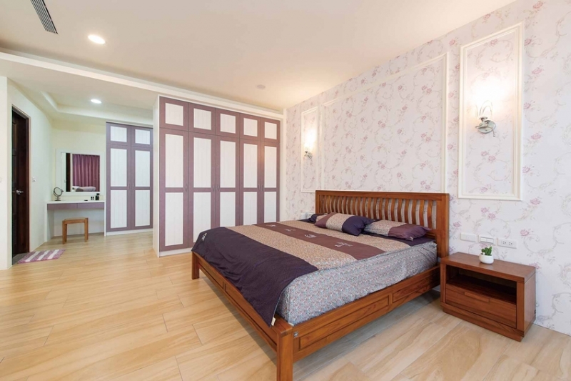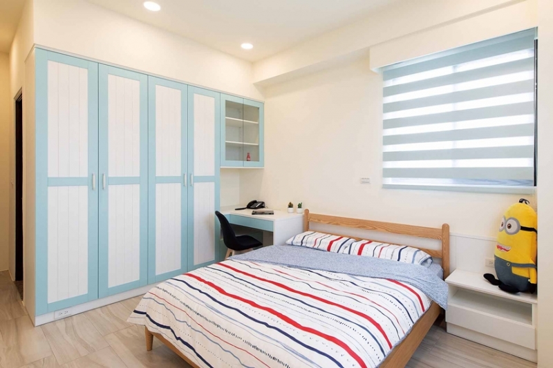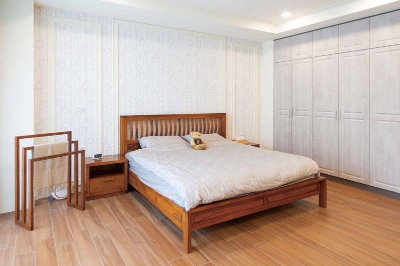 另外,品卉店長也留意到辜公館的鞋櫃容量不足,主動向辜先生說明,並規劃安置三座實木鞋櫃,在簡單中呈現原木材質的質樸,除可讓整體視覺更顯乾淨俐落,其收納容量也能將一家人的鞋子盡數收放,強化收納性,解決客戶沒預想到的問題。因為考量到家中有學齡前的孩子,店長建議選擇優渥的實木床架,圓弧床角的貼心設計,可避免小孩碰撞受傷,同時實木結構堅固也不怕孩子蹦蹦跳跳;其他像是要使用邊緣導角作為櫃門把手,以及在衣櫃裡陳設蓋板可將私人物品作巧妙隱藏等設計,都是店長主動發現,並協助解決客戶在入住新家時可能會面臨的問題。辜公館的裝潢工程大約歷時一年左右,這段期間內,品卉店長從細節中建立與客戶間的信任,而辜媽媽在遇到問題時,也總會向品卉店長詢問,讓辜家的新厝裝潢能夠更省力,成就溫潤舒適的生活享受。