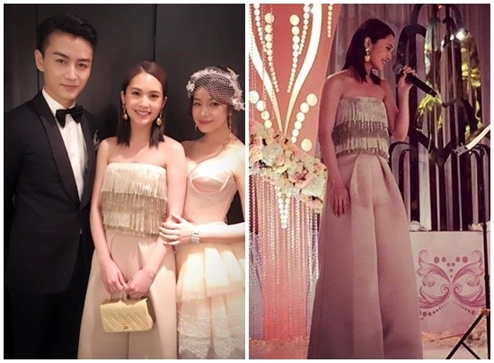 若煩惱婚禮該穿什麼顏色才不會觸霉頭,其實金色會是你很好的選擇!楊丞琳在參加好友陳妍希歸寧宴時,穿著一襲金色平口流蘇連身寬褲,再把頭髮收乾淨,看起來氣色超好又很時髦,儂編最愛這套。