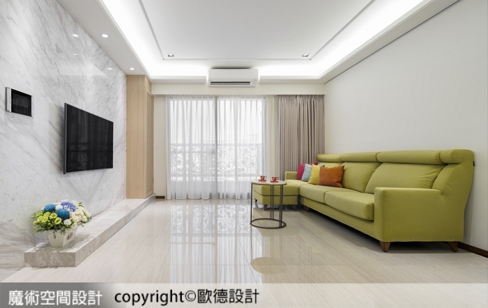 建材使用:歐德系統櫃、實木皮、銀弧大理石、安格拉珍珠大理石、歐德奧莉薇亞綠色床墊