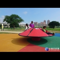 此外,仔細看也可發現在巨型蜜蜂內藏著許多小蜜蜂,它們停在蜂巢裡的遮陽棚上陪著小寶貝們一起玩耍,保護大家免受到太陽公公的曝曬。值得一提的是,本遊戲場有個貼心的設計,家長也可以坐在沙坑內的三角飯糰墩座座椅休憩,近距離陪伴小朋友玩耍,市府用心努力,為民眾營造更優質的遊戲場所。