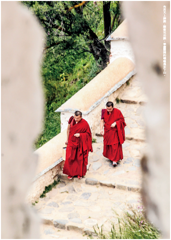布宮天上神殿,剛做完功課,準備離開的喇嘛漫步下山。