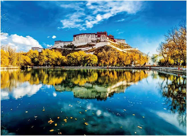 「龍王潭」,布達拉宮的寶鏡。春秋時節湖面平靜無波,好似一面如夢似幻的寶鏡,風景如畫,是愛好攝影者的天堂。