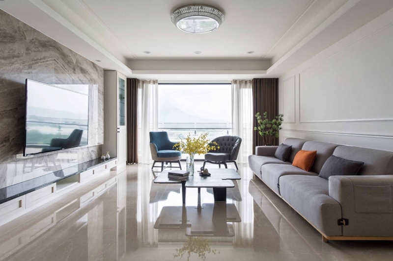 窗外即是開闊綠帶水岸、壯麗遠山的絕佳景觀,讓走進這屋子的第一眼,就能深刻體驗所謂心曠神怡的浪漫。考量基地為新成屋,原四房的格局也十分合乎屋主期望,因此陳思齊設計師嘗試從家庭成員個別的風格喜好切入,取女性成員喜愛的新古典,與男性成員偏好的現代主義折衷調和,滿足日常充裕機能需求的同時,也不忘保留日後隨喜好變化和適度再充填的可能。
