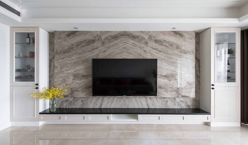 使用建材|天然石材、實木皮、木作噴漆、鍍鈦飾條、古典線板、壁紙、鐵件