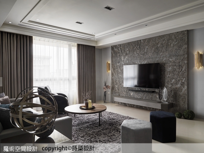 1.以新古典風格備受推崇的蒔築設計,在本案以現代風格發揮,一樣展現令人驚豔的設計能力。在色調與材質的駕馭上,渾然天成,公領域透過黑白灰點綴金屬光澤,私領域則以柔色系融入微古典,演繹了剛柔並濟的居家格調。