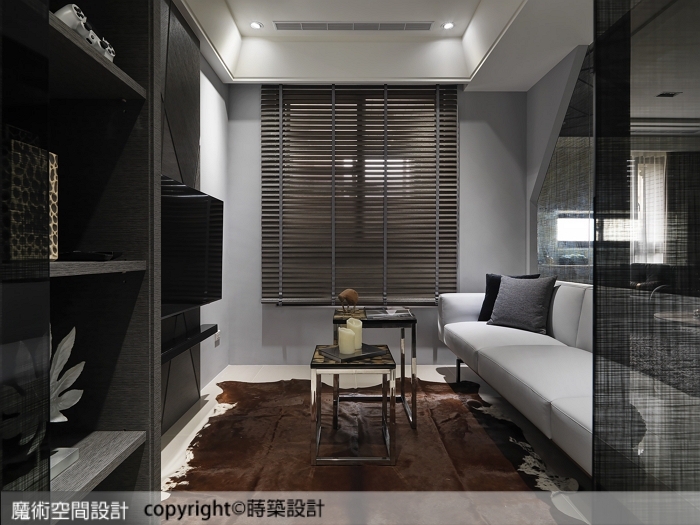6.灰玻貼膜所圍塑的視聽室,開啟霧紗般的半穿透互動情境,現代又摩登的半開放空間,讓家人多一處放鬆休憩場域。