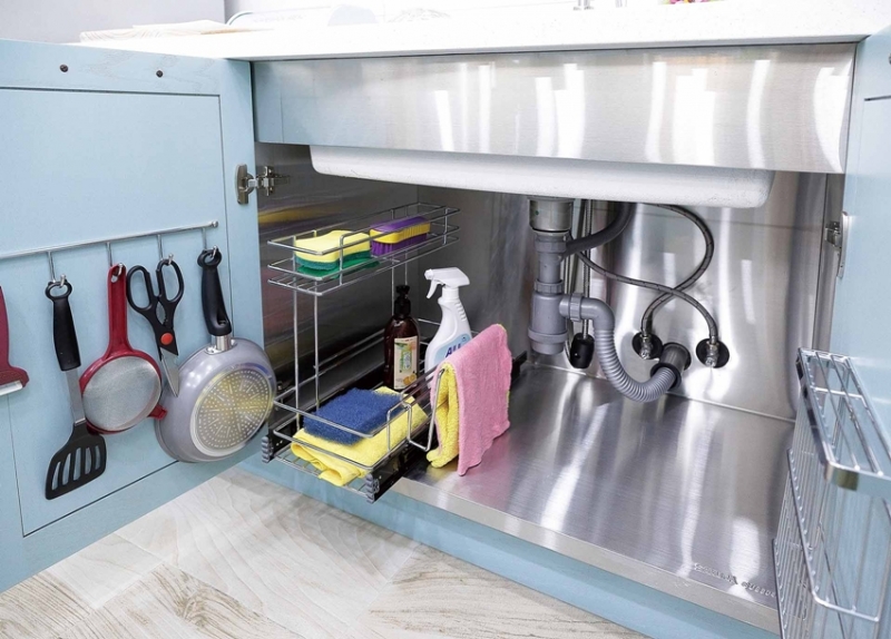 ↑ 水槽地櫃採用不鏽鋼材質,免除櫃體受潮煩惱,清潔更輕鬆。
