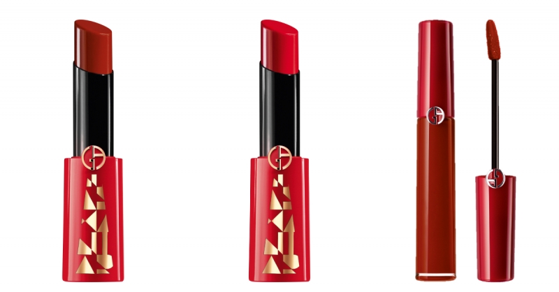 獨家「濃縮保濕精萃」及「植萃精華油」,能有效撫平唇紋,8小時潤澤保濕。革命性「熱融頂端注入科技」,能使唇膏更柔軟,幻化成水唇膏質地。獨家「唇露色彩配方」,一抹立即釋放濃郁色彩,綻放緞面光澤。奢華訂製緞光水唇膏更是在聖誕節推出亞曼尼金色LOGO限定版,替四款兼具實擦與魅力的裸色、紅色與莓果紫調再添派對晚宴的氛圍。