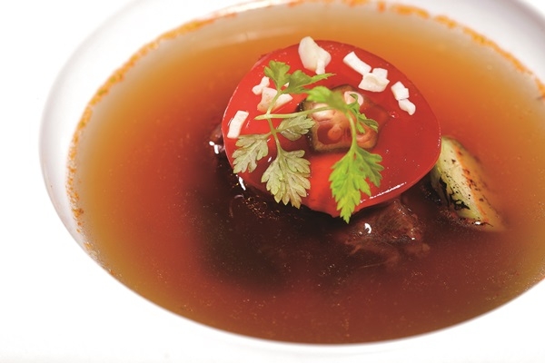 招牌燉飯以鑄鐵鍋裝盛保溫,今推薦羅勒青醬海鮮燉飯,正統義式做法,吸收雞高湯精華,濃郁米飯有嚼感,加入養生紅藜麥,營養更加分。以避風塘做法的貝里斯龍蝦,Q彈肉質滿溢炸蒜酥香味,令人意猶未盡,而超大隻的智利帝王蟹不需過多調味,以白酒蒸熟就很誘人。佐賀和牛先煎3分熟,再放置玫瑰鹽板上熟成,讓牛肉吸取玫瑰鹽天然鹹味,之後再煎過,這焦香的味道,入口即化的軟嫩多汁,深深被臣服。