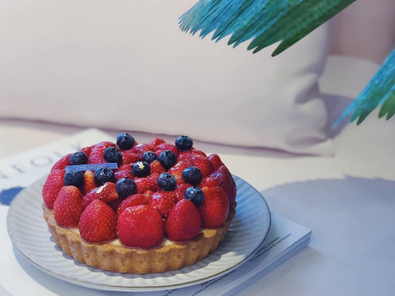 人氣商品「草莓卡士達塔」,酥脆剛好的塔皮,搭配微甜不膩的烏干達香草卡士達,內層再包裹著杏仁奶油餡,最後疊上酸酸甜甜的草莓及藍莓,完全就是戀愛的滋味!