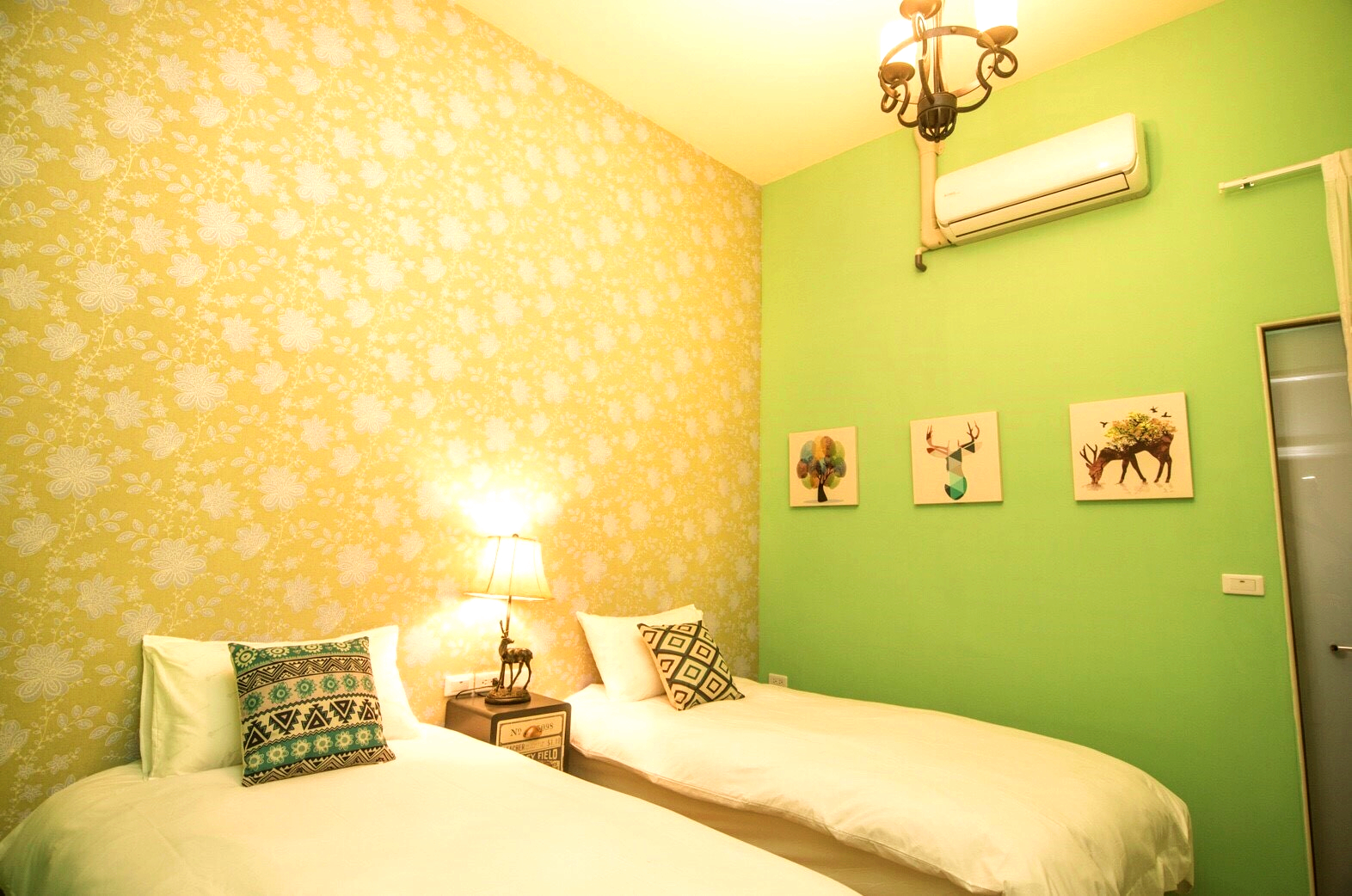夏日最適合在清新爽朗的房間度過了!以雪白、鵝黃與青蘋果雜揉出的陽光小鹿以鹿為主題,設計風格相當森林系,能讓入住的捧由備感自在舒服。