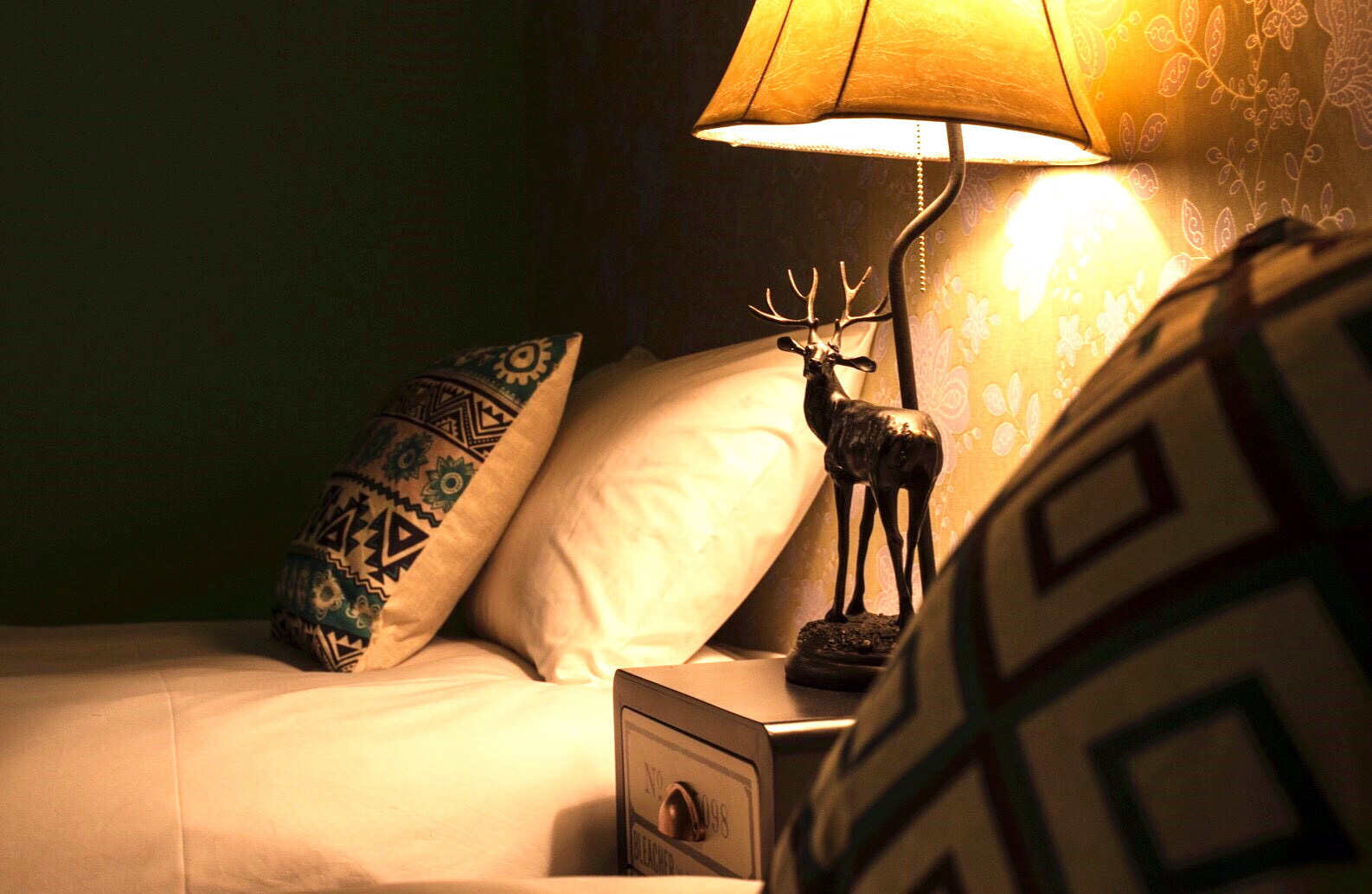 民俗風圖騰的枕頭令人心水不已,晚上如果只開小燈則可說是情調十足。
