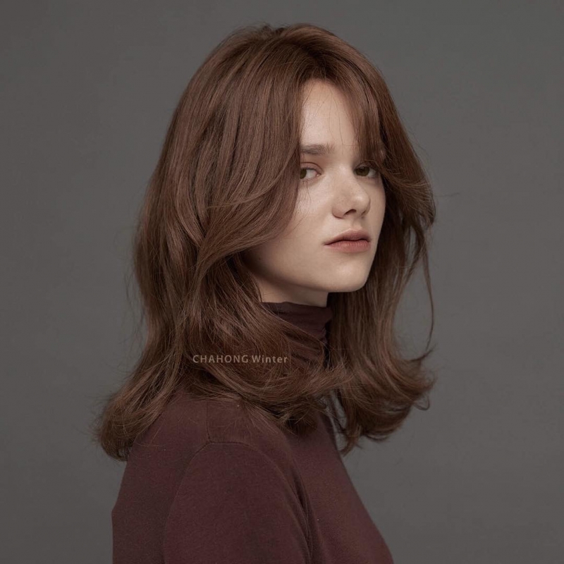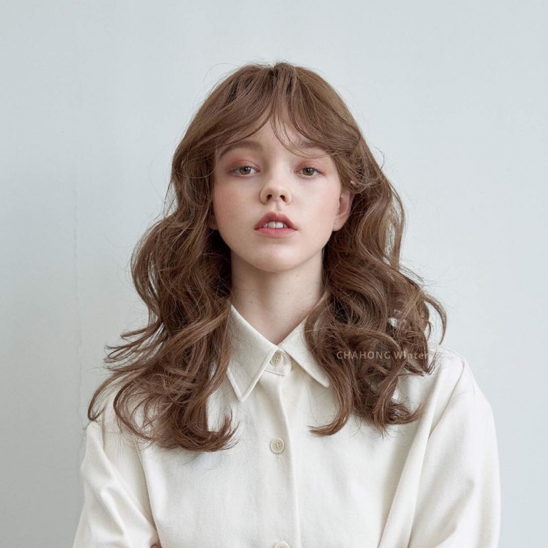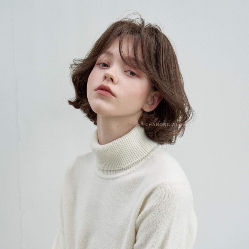 高層次的八字瀏海給人一種慵懶的感覺,非常適合秋冬,兩側頭髮線條能修飾臉型,並利用瀏海的弧度增加女人味,整體看起來俏麗又不失氣質。