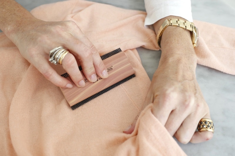 有穿過毛衣的人一定都會了解(誰沒穿過毛衣…),毛衣最難保養之處就是起毛球,所以去除毛球就是成功保養的第一步!首先,在清洗之前,先使用除毛球刷將起毛球處順著同一方向輕輕滑動以去除小毛球,像是毛衣、帽子及圍巾等精緻羊毛織物都適用。