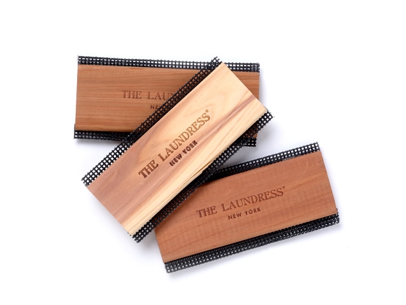 THE LAUNDRESS除毛球刷,NT$750。專為毛衣上細緻的小毛球及輕微的糾結狀況所設計,雪松木的材質兩邊有細緻的金屬排梳,能溫柔地將羊毛織品上細小糾結物去除,使毛衣恢復柔順。