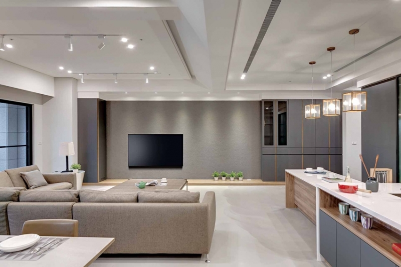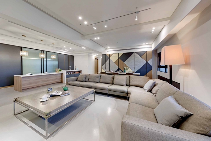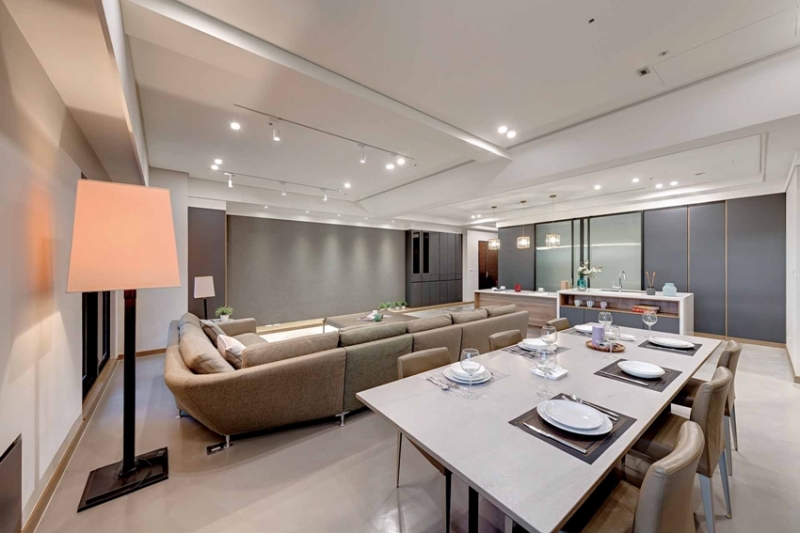 在寸土寸金的都會裡,能夠擁有寬敞的起居空間,無疑是件無比幸福的事。但若像本案一樣,不計露台、陽台,光是室內實際面積就超過50坪,加上家庭成員也算簡單,僅僅需要隔出三間臥室就夠用,所以大半場域依照主人需求,打造成開放感十足且機能完善的公共空間,而特力幸福家團隊接手此案後除了彙整現場各項條件,也搭配多種新穎材質、工法、訂製家具,精彩呈現屋主喜愛的沈穩、獨特與氣派。