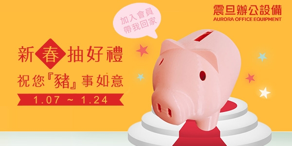 即日起至1/24止,只要加入震旦會員,就有機會抽中豬事如意撲滿(共3名)!