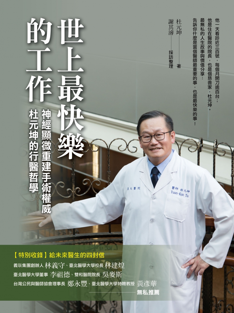 享譽國際的神經顯微重建手術權威、義大醫院院長杜元坤在本月出版新書──《世上最快樂的工作:神經顯微重建手術權威杜元坤的行醫哲學》,回顧從醫三十載最真實的醫療故事,用自身的生命經歷,與病人站在一邊,追求專業極致,讓冰冷的手術房有了溫度,甚至締造燕巢鄉一流醫療中心的奇蹟,讓鄉下醫院與國際和時代同步。