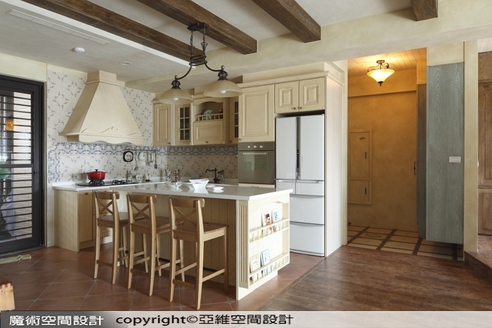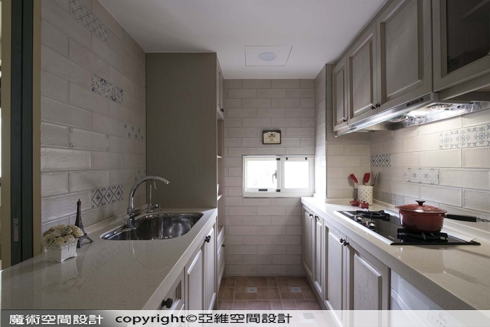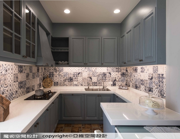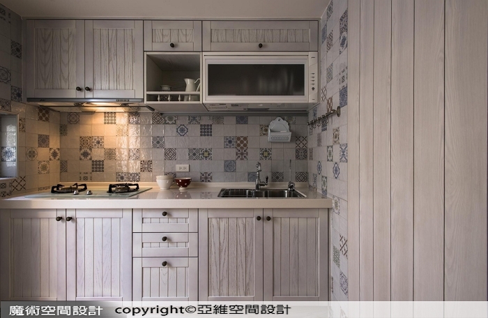 ▲花磚與手刷木紋門片的完美搭配,有如誤闖南法鄉間小廚房,簡易功能也可以很漂亮。