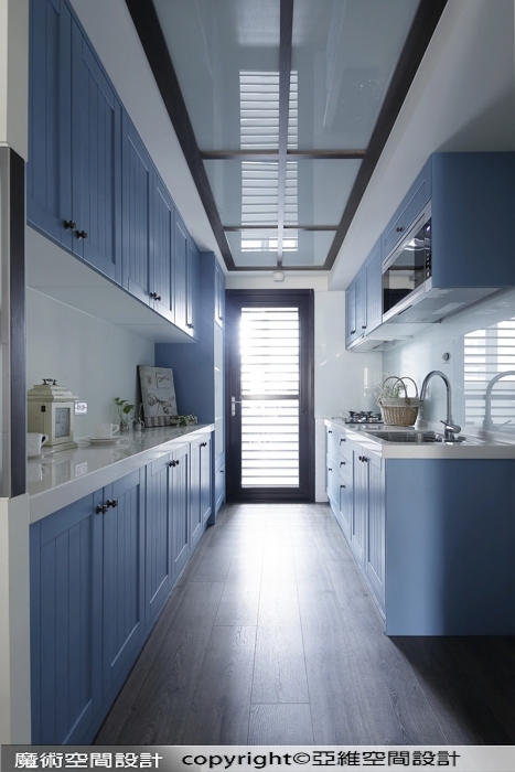 ▲一般建商多規劃長形廚房,透過櫥櫃面板色彩及其他配置調整,也可以讓廚房煥然一新。