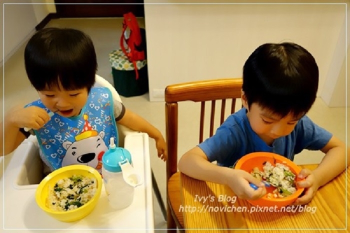開飯時刻,兩個小孩乖乖的坐在椅子上吃飯,不會有跑來跑去的情形發生,