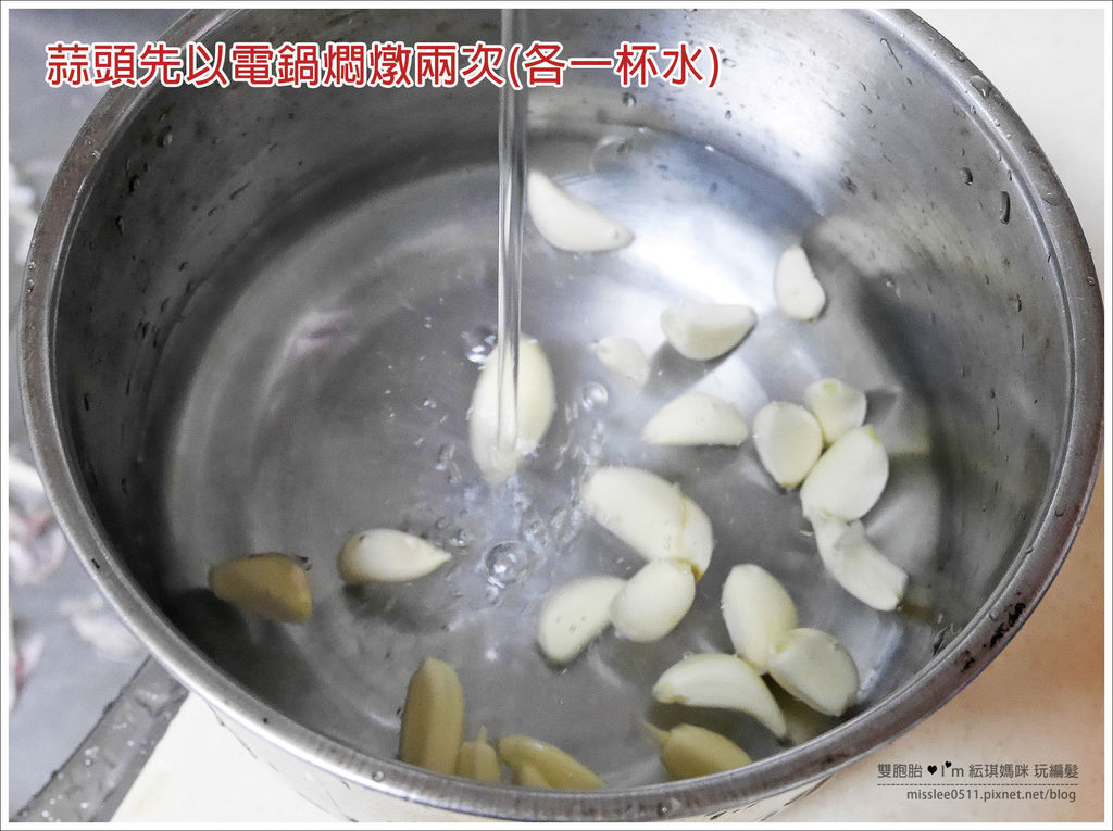 為了讓蒜頭軟爛,能喝到滿滿的蒜味,所以我先利用電鍋燜燉個兩次~(電鍋內各一杯水)