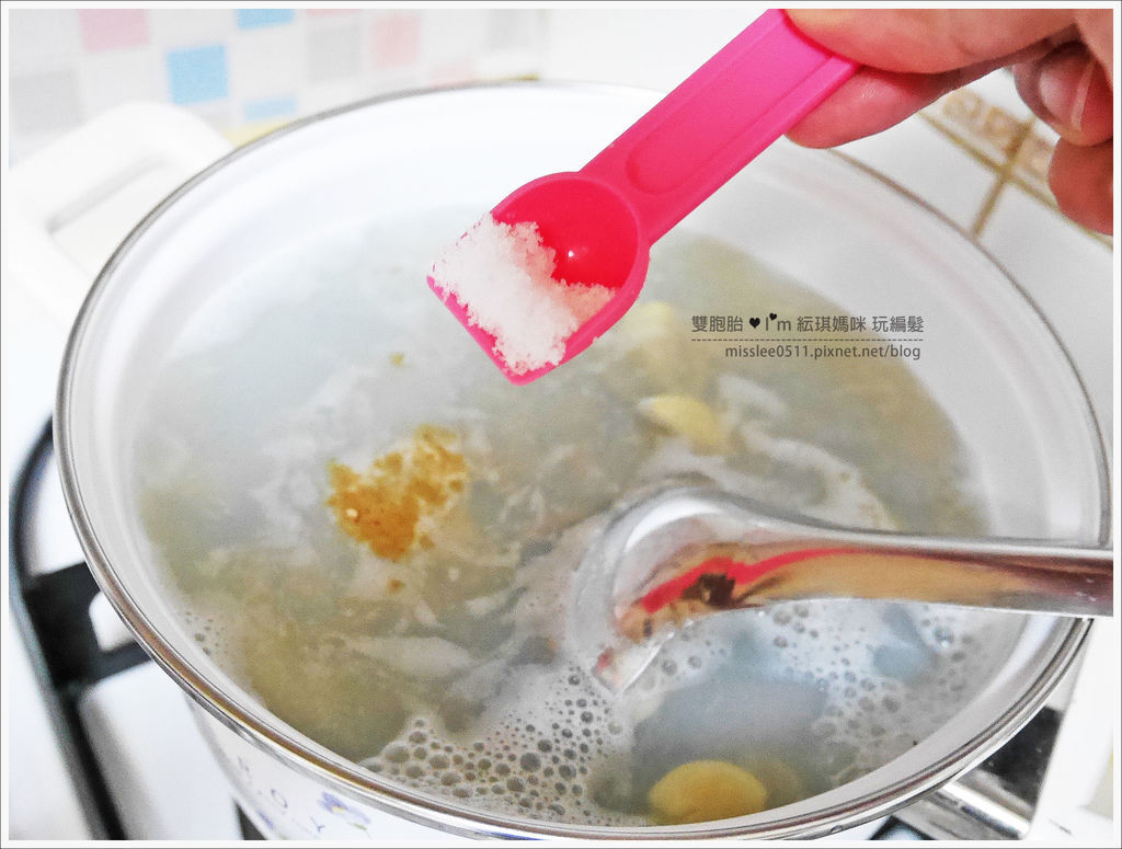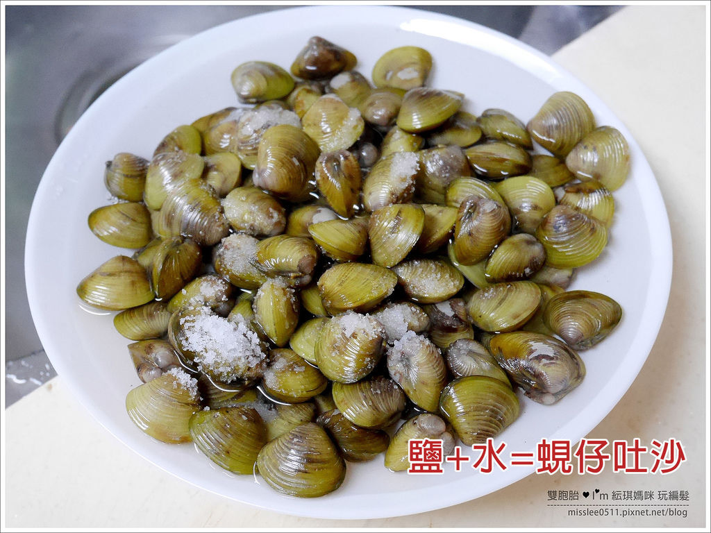 早上從市場買回家後,就直接以鹽巴泡水,讓蜆仔吐沙。