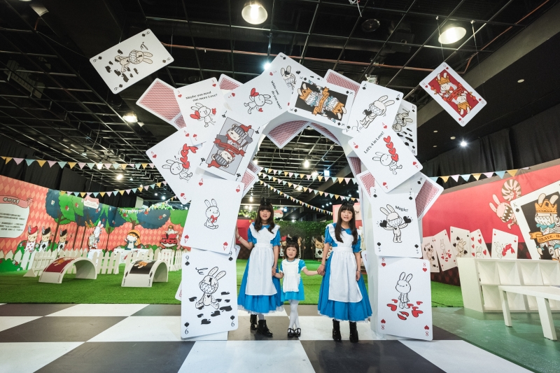 本次展覽規劃全新獨家五大主題展區,療癒系童話擬真場景包括「神秘兔子洞」、「哇~飛起來了?!」、「瘋狂茶會顛倒屋」、「皇后的槌球場」、「撲克兵團」,還有超吸睛 3 米高巨型「紙牌拱門」,讓入場民眾宛如縱身躍進夢幻的愛麗絲夢遊世界裡,打開深藏許久的童心,細緻瑰麗的展場絕對好玩,拍照打卡大呼過癮!除了展區之外,現場還有童話市集,聚集國內外繪本故事、動畫卡通人物、原創角色商品大集合,精選生活雜貨、文具小物、絨毛公仔等超人氣周邊商品,一次滿足所有大人孩子的不滅童心!