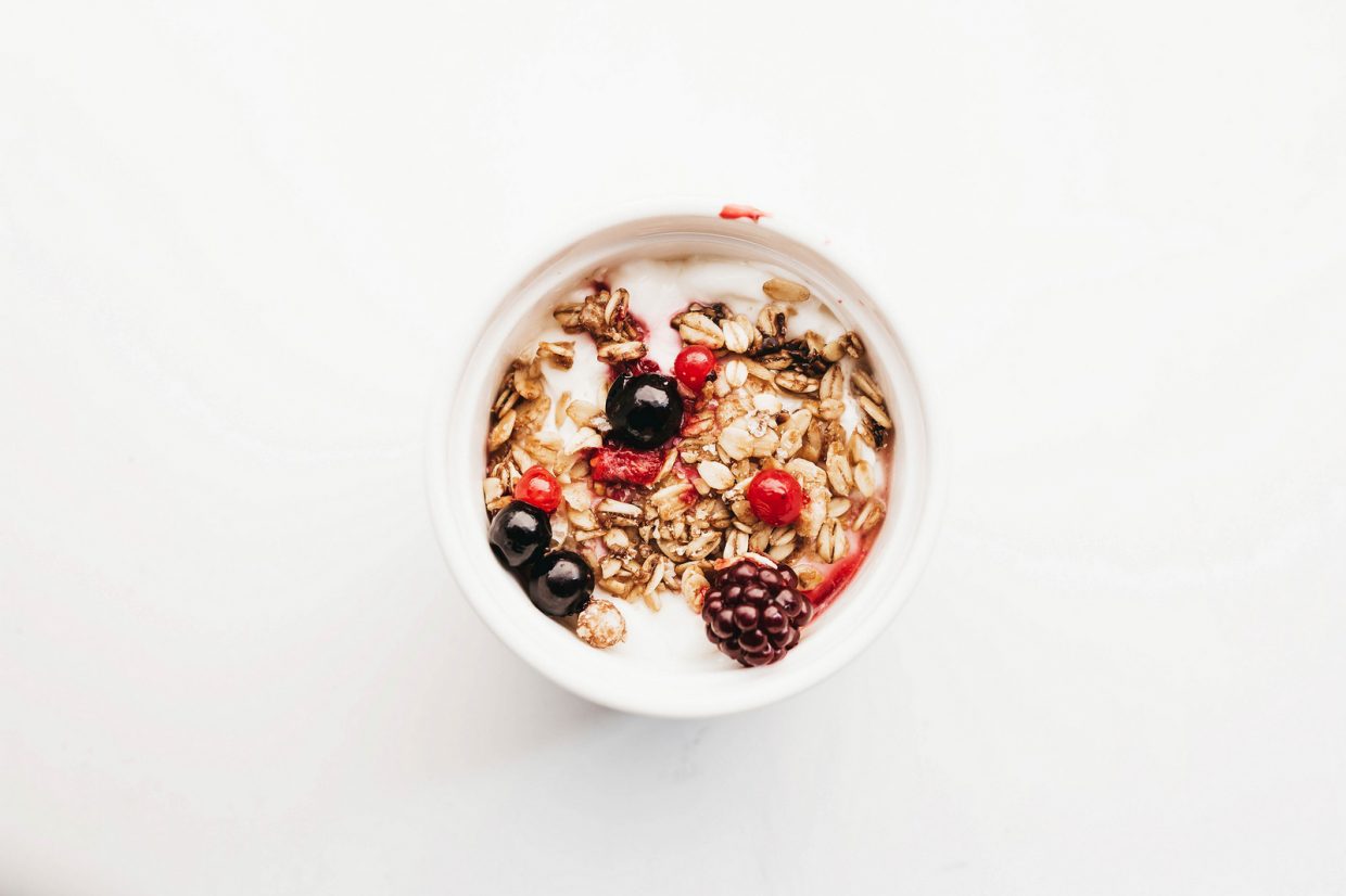 水果優格可說是優格食譜的萬年不敗經典款,除了能淋上蜂蜜或果醬,再搭配穀物、堅果與水果,或是做成水果優格杯外,若是怕早上肚子餓的捧油,還能把希臘優格當作「果醬」抹在吐司上,加上水果切片或是堅果、燕麥,提升早餐的口感。