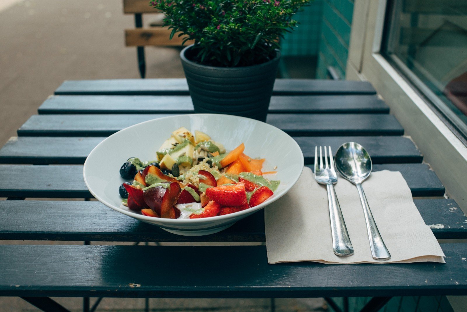 喜歡更為濃密口感的捧油,可以依照自己的喜好將冷凍莓果或是藍莓,與希臘優格放入調理機內,喜愛冰一點的口感,還能加入些許碎冰後打成泥狀,並放入碗內。接著在思慕昔上擺弄自己喜愛的水果,如香蕉、鳳梨、草莓、奇異果,甚至加入麥片與穀片,就是一個同時能補充纖維和蛋白質,營養滿滿的小點啦!