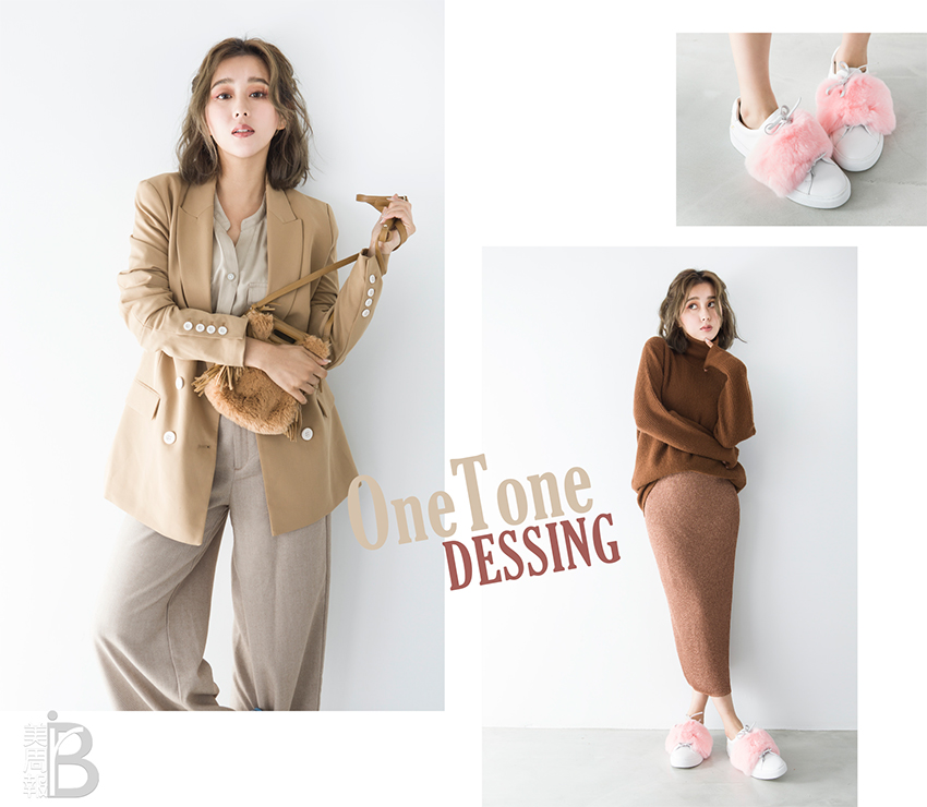 擔心同色調顯膚色髒沒關係,利用深淺穿出不同的視覺層次,女孩們想要下半身顯瘦就把深色放下身,可以拉長腿部曲線外,害怕全身土色太重,巧妙善用深淺變化增加質感又有風格。