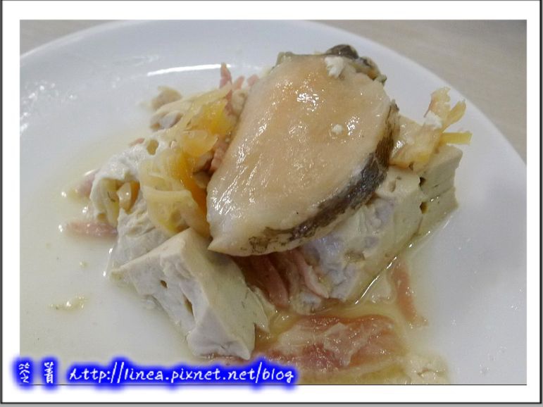 滿嘴正都是北寄貝小姐在跳舞咧,下一道砂鍋料理悄然現身,這道我是非常好奇,那也是朋友大力推薦,為了這道菜我們還要兩天前預約才有喔,工序繁複,費時長久,所以臨時要吃是吃不到的,菜名很簡單:「奚家豆腐」。(因一位奚家伯伯重現得名)
