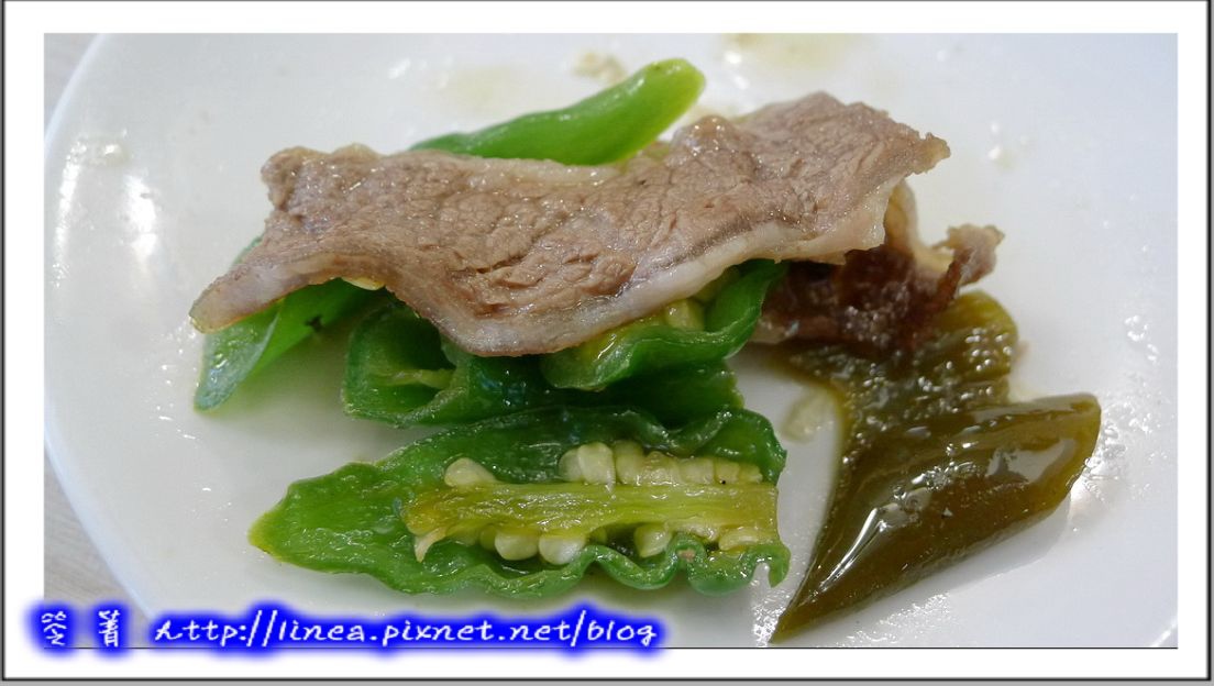 嘿,我好奇的夾了一圈辣椒起來吃,想說應該跟剝皮辣椒一樣還好……結果太白痴了,其實還是會辣啊!><~~~我連辣椒子都一起吃下去。
