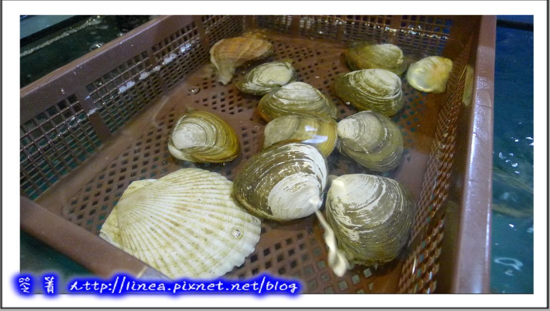 二話不說當然一人叫一顆,結果orz的是……人家哪是什麼蛤蜊啦!人家是真正從北海道過來,活色生香的「北寄貝」啦,蛤蜊個頭……><�~~在日本可是高檔生魚片的材料哩,如果牠們會說話應該很想咬我!