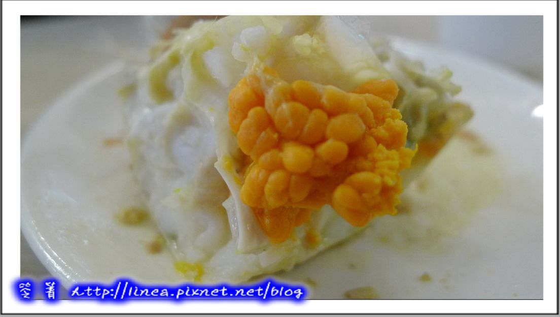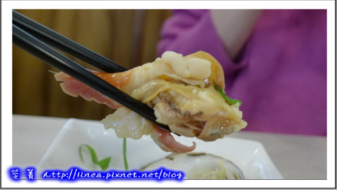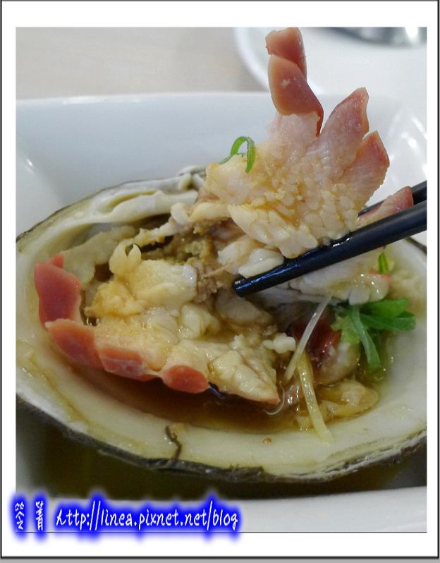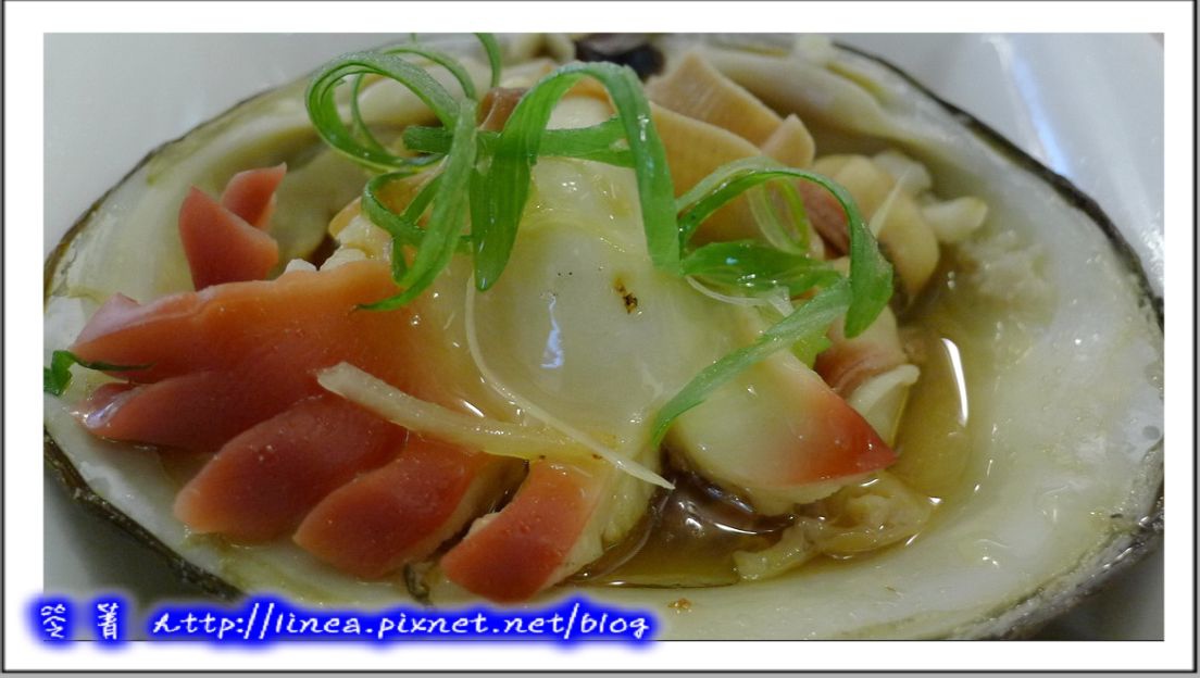 有夠大吧!看看,看到裡面就知道真的不是蛤蜊(喂,滑嫩鮮滿帶著粉橘色,厚實飽滿,這是簡單的和風醬油加清蔥,咬下去是Q韌中帶著一點脆感,和風醬油勾出鮮甜味,盈滿口中,真是喔伊伊伊係的啦!這種貝一定要筆記下來,以後就知道要點來吃了!