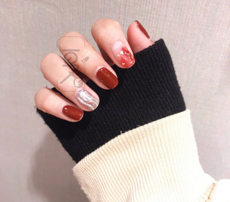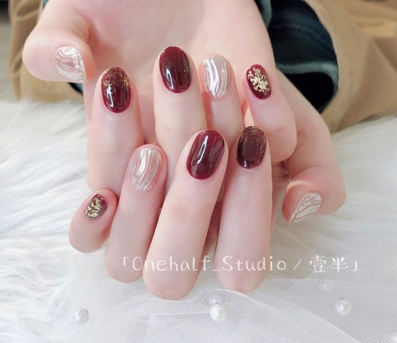 你們看看那個水波紋,超級美~~透過銀色、玫瑰金等具「金子」光澤的顏色,不僅顯白,還能藉由水波紋讓手指看起來更加修長!也讓紅色美甲顯得更特別,不易撞款~