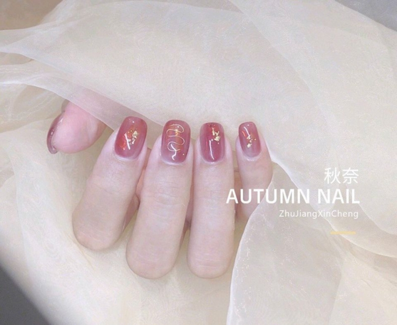 春天紅色美甲推薦2. 透明層次感,宛若琥珀