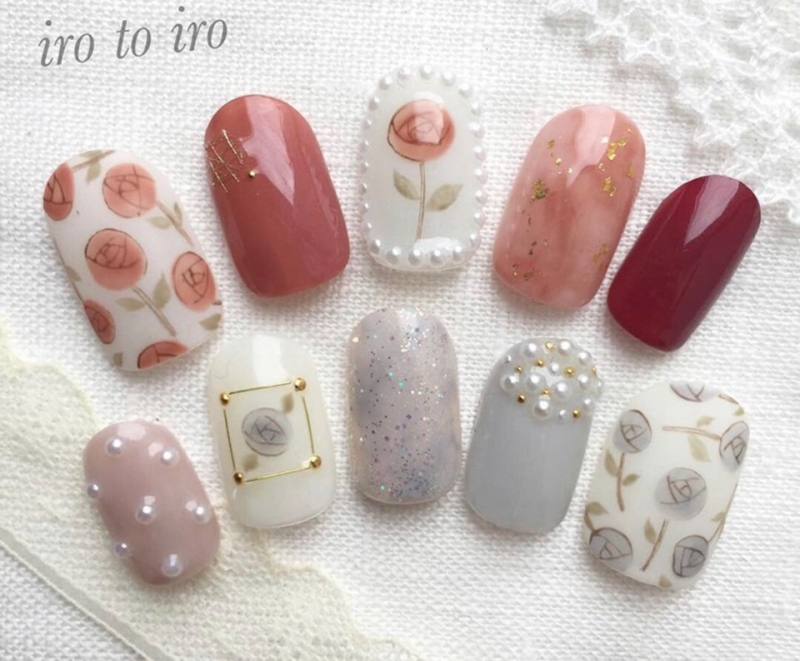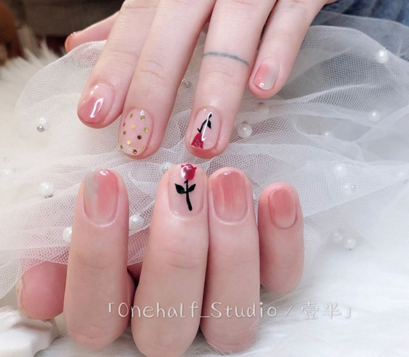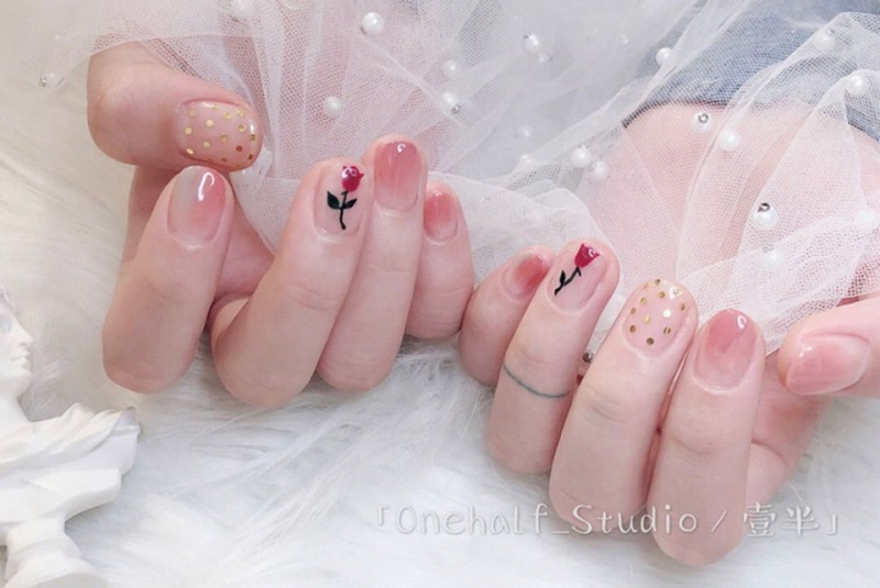 春天紅色美甲推薦3. 以「花」點綴,散發精緻小女人味