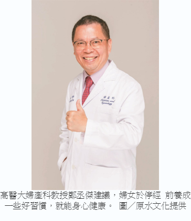 鄭丞傑建議,更年期婦女可以多食用大豆製品及蔬菜、水果並攝取適量的維生素,以及減少動物性脂肪的攝取;在運動方面,可多做跳繩及跑步運動,以增加腦細胞的活力及兒茶酚胺物質,適度的運動可讓人精神愉快,比藥物控制來得有效;而預防更年期症狀最好的方法,是在停經前就養成好習慣:飲食得宜、多喝牛奶、擁有足夠的運動,以及定期檢查膽固醇與血壓。