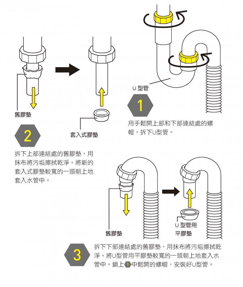 洗臉台或廚房水槽下的U型管連接處有時會漏水。