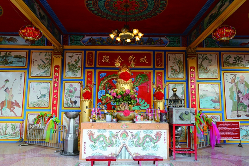受到印度教與泛靈論信仰影響,泰國每個府的最大城都會設立城市之柱(หลักเมือง;Lak Muang),有的是建城時的根基,有的是刻意幫助全城沖煞、擋災而建。益梭通的城市之柱供奉於城隍古廟(ศาลเจ้าพ่อหลักเมือง;San Chao Por Lak Muang)之內,神桌上沒有佛像,而是三根金色柱子,兩短一長,是泰國唯一供奉三市柱的府。兼容並蓄的泰國社會裡,華人文化總是找得到安身立命的位置,將市柱供奉在城隍古廟,就是絕佳的證明。