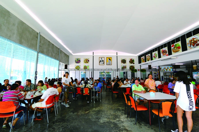 中午炙熱無比,必須找間冷氣大放送的餐廳才能豪邁大吃。踏入餐廳的那一刻,我發現有講英文、日文的,還有標準中部泰文腔的曼谷人,應該是所有不耐熱的觀光客們,通通都坐在裡面了。Ban Khun Ya Rimthuan Branch是老字號餐廳Ban Khun Ya(บ้านคุณย่า)的新分店,主打東北菜餚與在地河鮮,還提供蛋糕甜點、韓式水果冰山與咖啡飲料,滿足所有人的需求。