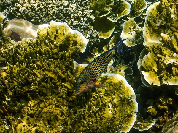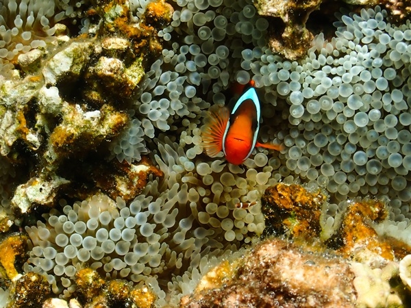 探索海底森林,真實版的海底總動員就在眼前上演,仔細尋覓海葵,果然就看到在家園附近徘徊的尼莫!橘色的頭、橘色的鰭、黑色的身軀,掛著一圈白色的彩帶,小丑魚如此迷人可愛,還有更多顏色繽紛、姿態各異的熱帶魚。有時還可見帛琉國寶魚──蘇眉魚、又稱拿破崙魚,優游悠哉的身影。