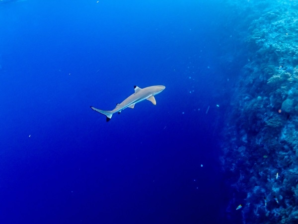 歡迎來到「鯊魚城」!2009年起,帛琉成為世界第一個國家鯊魚保護區,終止水域內所有商業性鯊魚捕撈活動,17種鯊魚在帛琉安心茁壯成長。鯊魚城內的鯊魚,學名烏刺真鯊,俗稱黑鰭礁鯊,顧名思義胸鰭及背鰭的頂端是黑色的,而下部是白色,很好辨認。烏刺真鯊身長常見1.5米,沒有攻擊性,但皮如砂紙般粗糙、利牙如刀子般尖銳,仍不適合過於靠近。