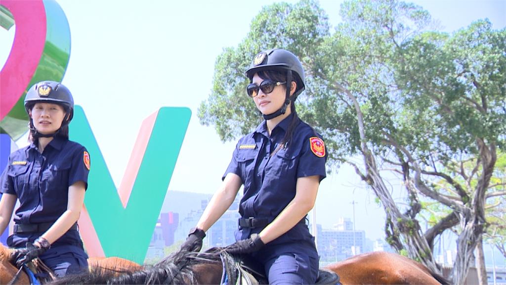 艷陽高照下,高雄市騎警隊員警換上新式服裝與大家見面,制服上衣從過去的灰色改為藏青色,而且穿脫比以往更加方便快速。